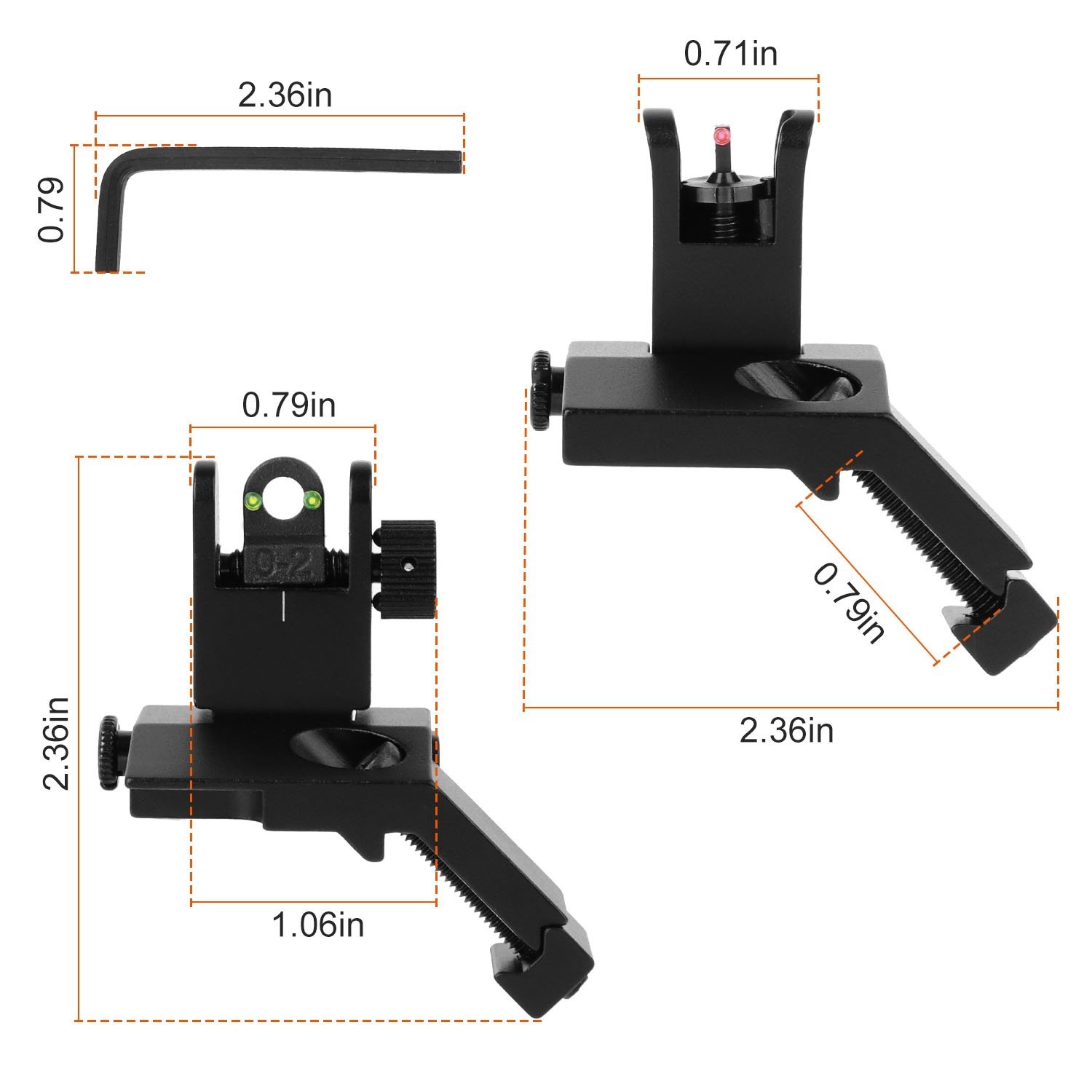 45 Degree Offset Rear Front Flip Up Sights Fiber Optics Aluminum Sights Tactical Folding Back Up Sight Set with Red Green Dots Fit Picatinny Weaver Ra