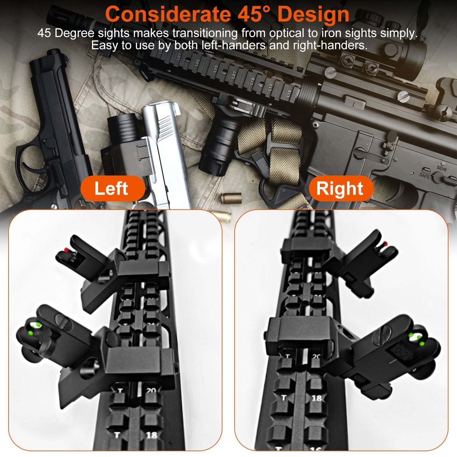 *Considerate 45° Design*:45 Degree sights with Low-Profile Design makes transitioning from optical to the sights simply. Easy to use and suits for both left-handers and right-handers.