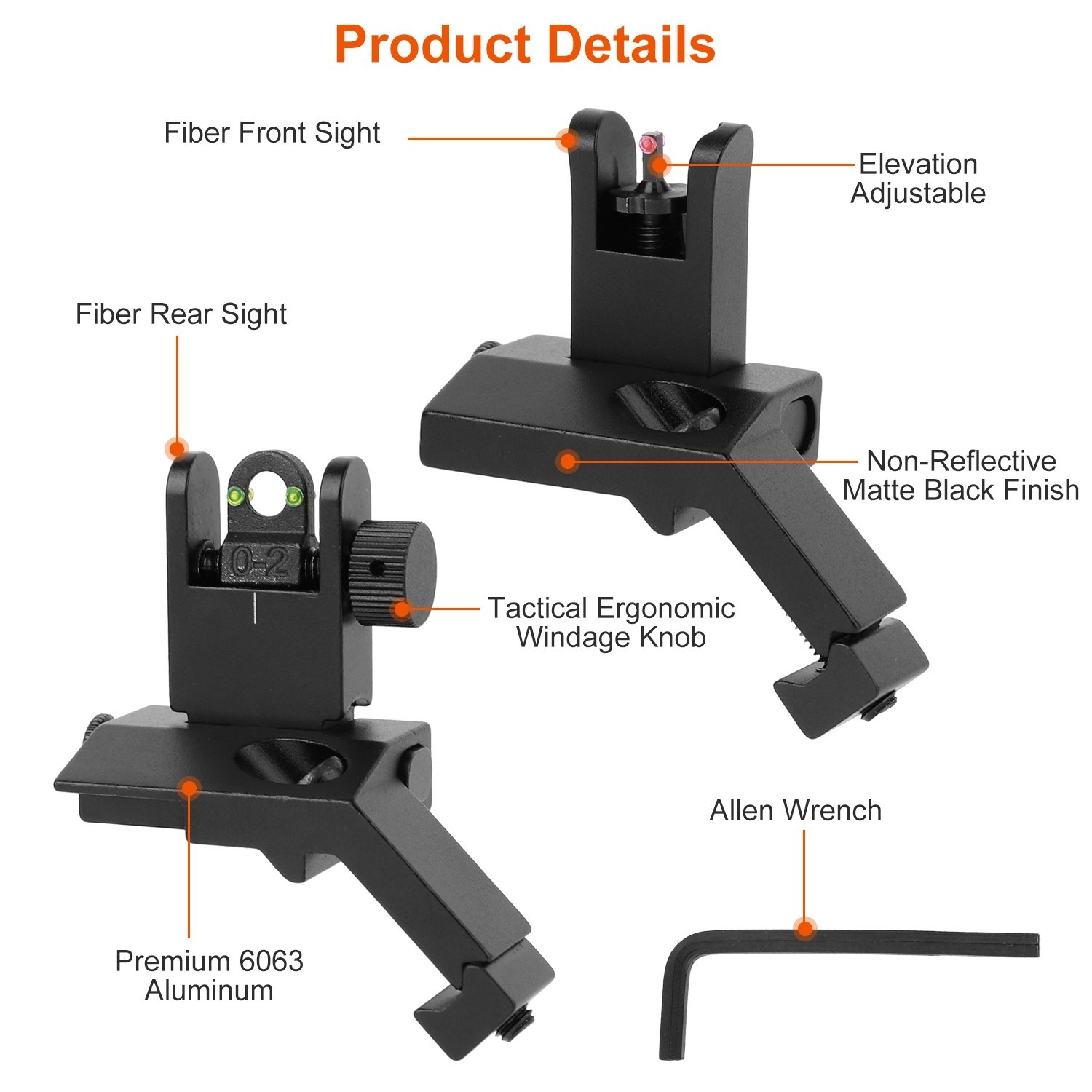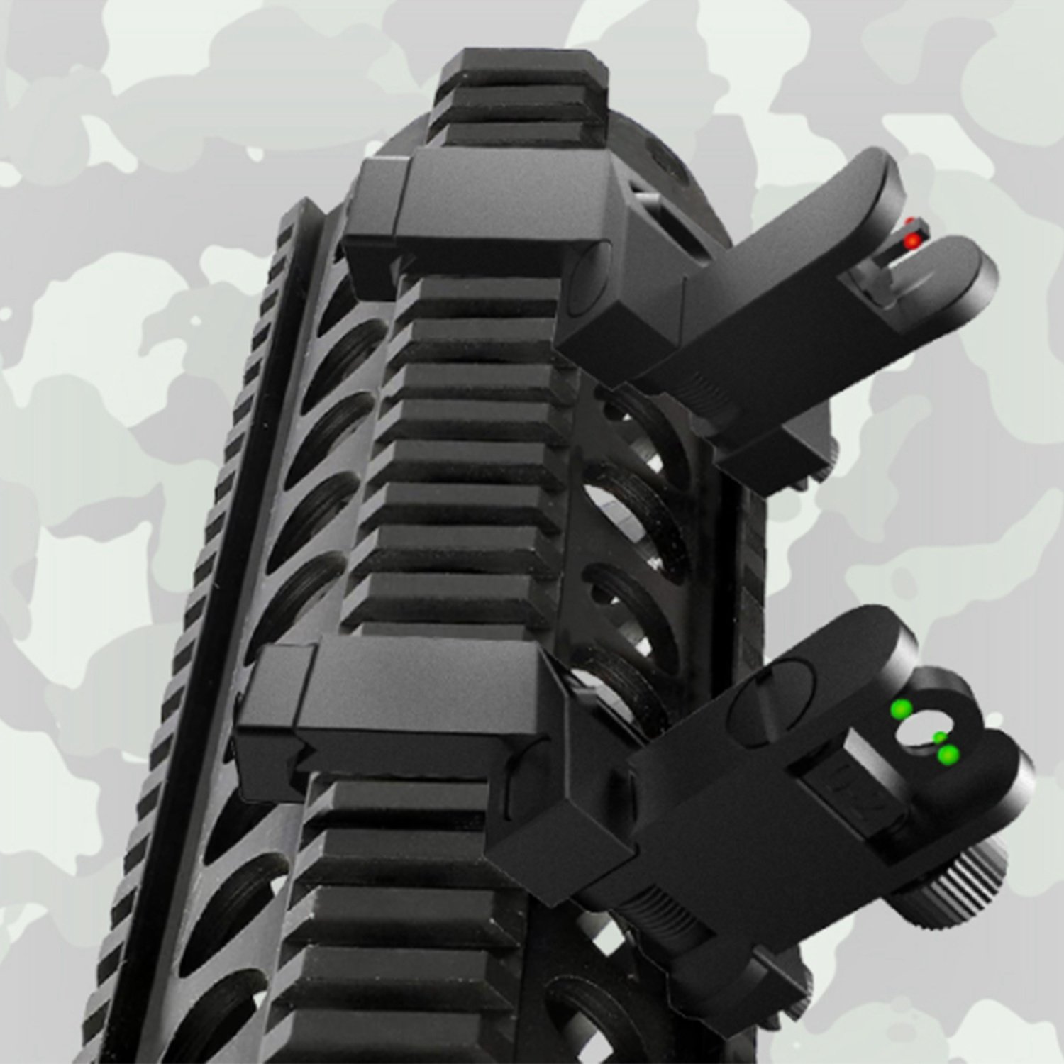 Home > 45 Degree Offset Rear Front Flip Up Sights Fiber Optics Aluminum Sights Tactical Folding Back Up Sight Set with Red Green Dots Fit Picatinny Weaver Ra