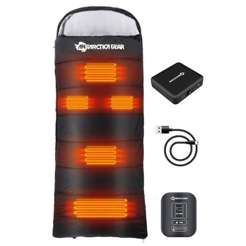 ANTARCTICA GEAR Heated Sleeping Bag, 5pcs Heating Areas Sleeping Bags 3 Adjustable Heating Levels Cold Weather Sleeping Bag For All Season Hiking & Ca