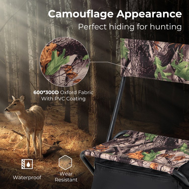 5.No Installation Required: Coming with full installation, the hunting blind seat saves your precious time and energy. All you need to do is to unfold the backrest and start a journey of hunting.