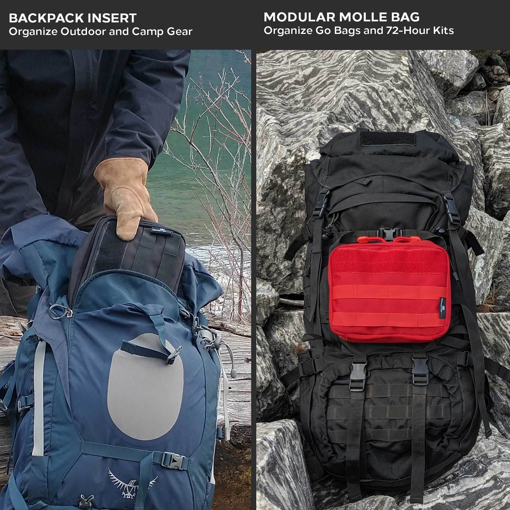 5.[APPLICATIONS] The Excursion First Aid Kit MOLLE Bag (IFAK) was originally designed for emergency and survival gear, tactical gear, and first aid kit supplies (IFAK). It can also be used for backpacking, school gear, electronic gear, purse contents, etc. The various types of pockets and pouches are perfect for a variety of gear, tools, and supplies.