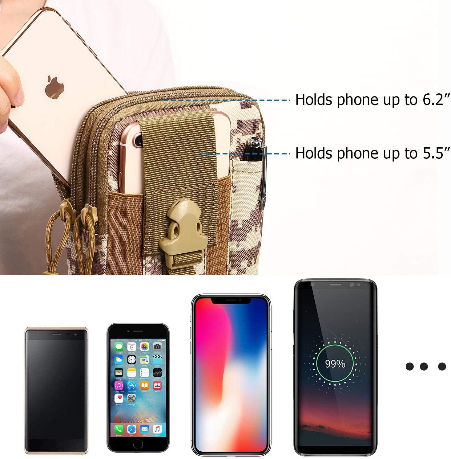 MULTI-USE STORAGE: This MOLLE waist bag is ideal whether you need to carry your meds with you in a secure place, or whether you want a place to keep your cell phone and power bank safe from the elements. Keys, wallets, glasses, contact lens containers, medical masks, and jewelry are just a few of the other items that this multiple-pocketed bag can hold while you're busy living your best life.