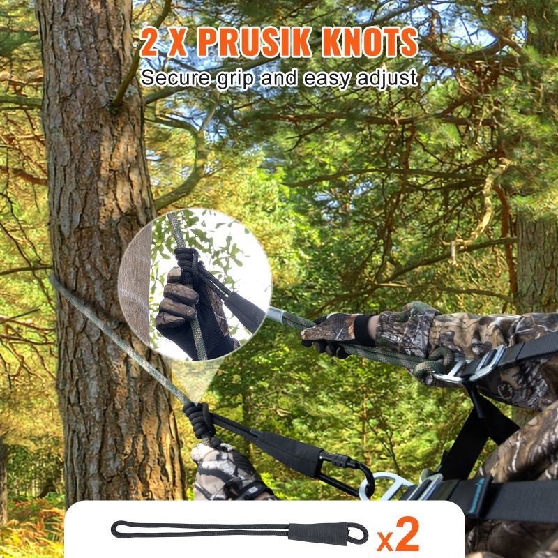 The safety rope for tree stand comes with 2 sliding prusik knots for reliable rope control.