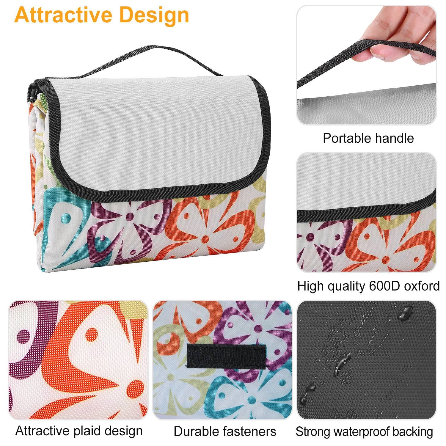 60" x 78" Waterproof Picnic Blanket Handy Mat with Strap Foldable Camping Rug for Camping Hiking Grass Travelling