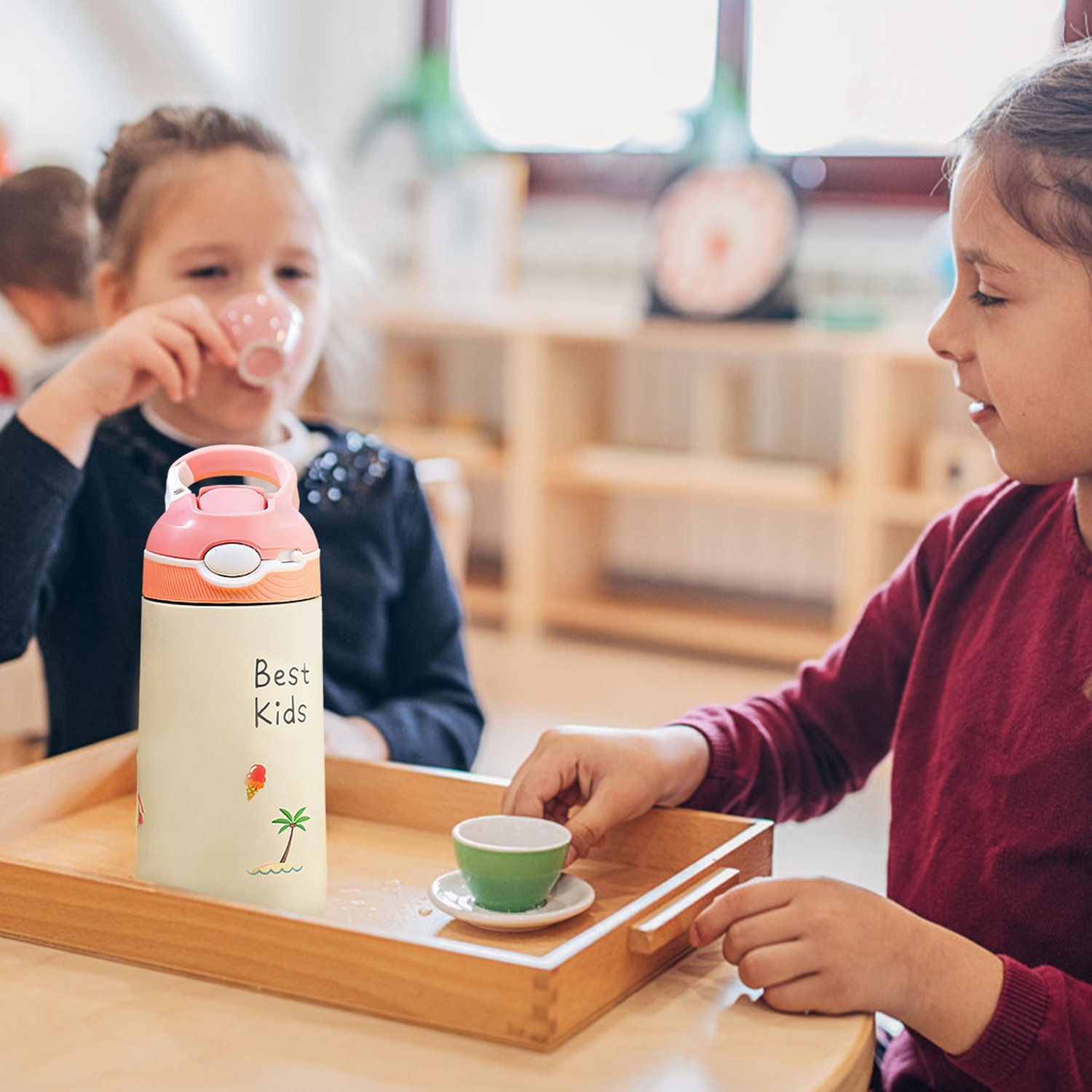 Our insulated bottle features 13.5Oz capacity and keeps drinks stay at the desired temperature for 12-24 hours, allowing kids to enjoy their preferred temperature beverages throughout the day. Also come with cute pictures on the bottle, which encourages kids to keep hydrated all the time. Made of premium 316 stainless steel, safe for children to use and free from harmful chemicals. The lock switch and push button ensures its leak-proof and long-lasting performance. Perfect for school, sports, swimming, or cycling. Perfect for toddlers, boys and girls!
