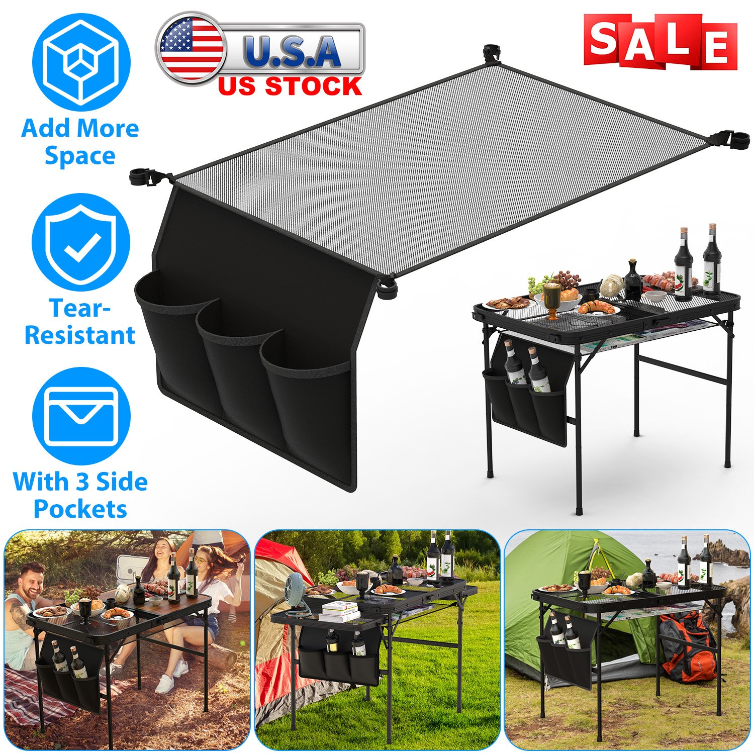 Home > Hanging Storage Net for 35.43x23.62 Camping Table Under Table Folding Net Bag Tear-Resistant with 3 Side Pockets 4 Corner Clips for Camping Hiking Fis