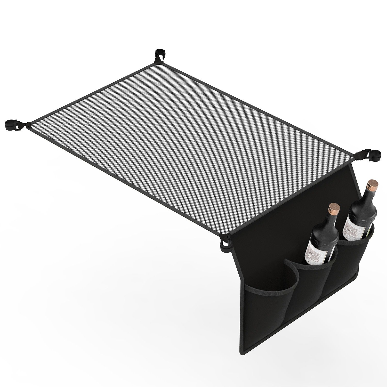 Hanging Storage Net for 35.43x23.62 Camping Table Under Table Folding Net Bag Tear-Resistant with 3 Side Pockets 4 Corner Clips for Camping Hiking Fis