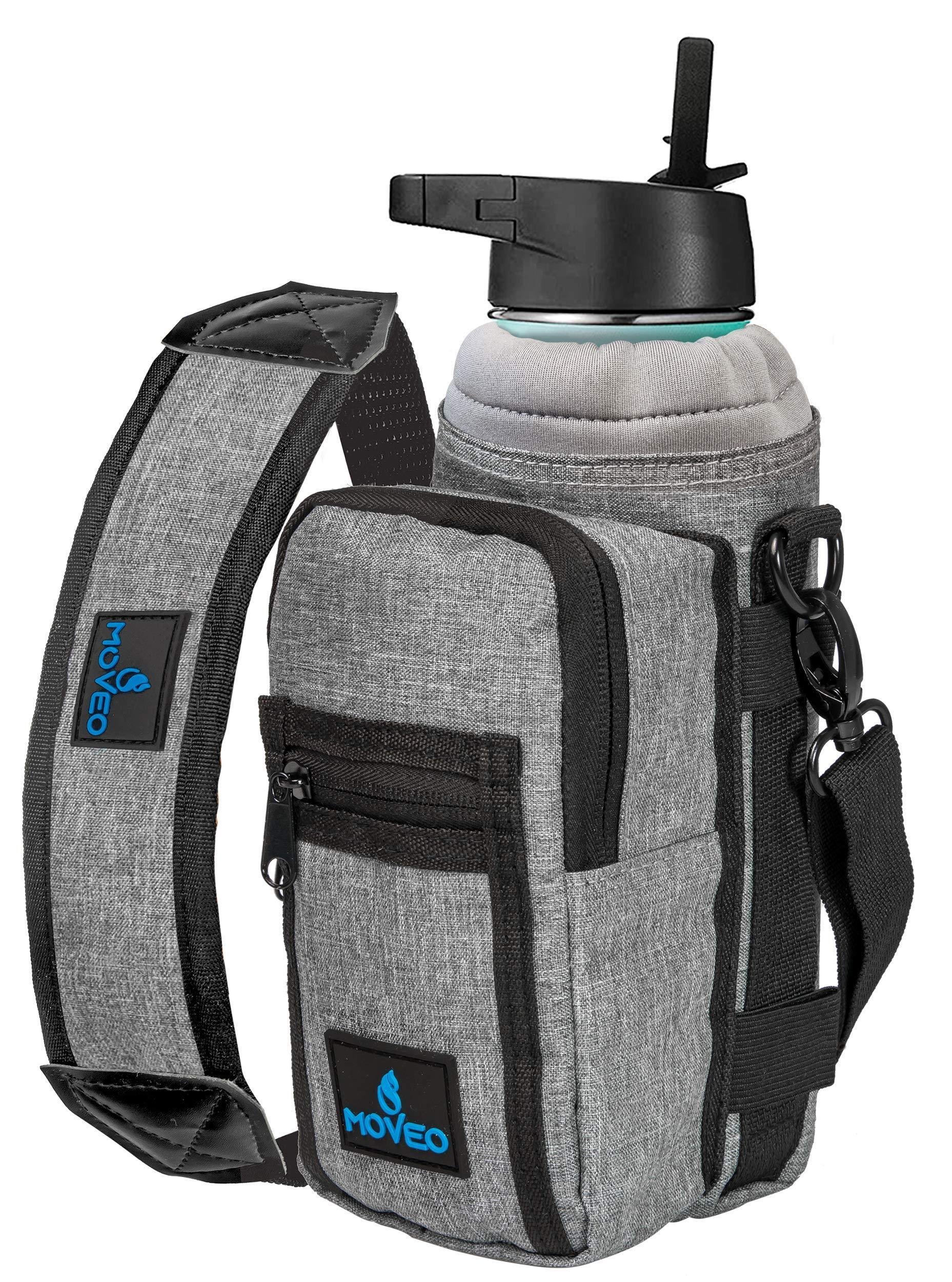 5.designed for people who are always on the move; people who enjoy life. its a water bottle sling for walking, and vacations. a water bottle holder for hiking, biking and all your wandering! moveo holds men or women water bottles. it even works as a kids water bottle with strap when their little arms get tired.