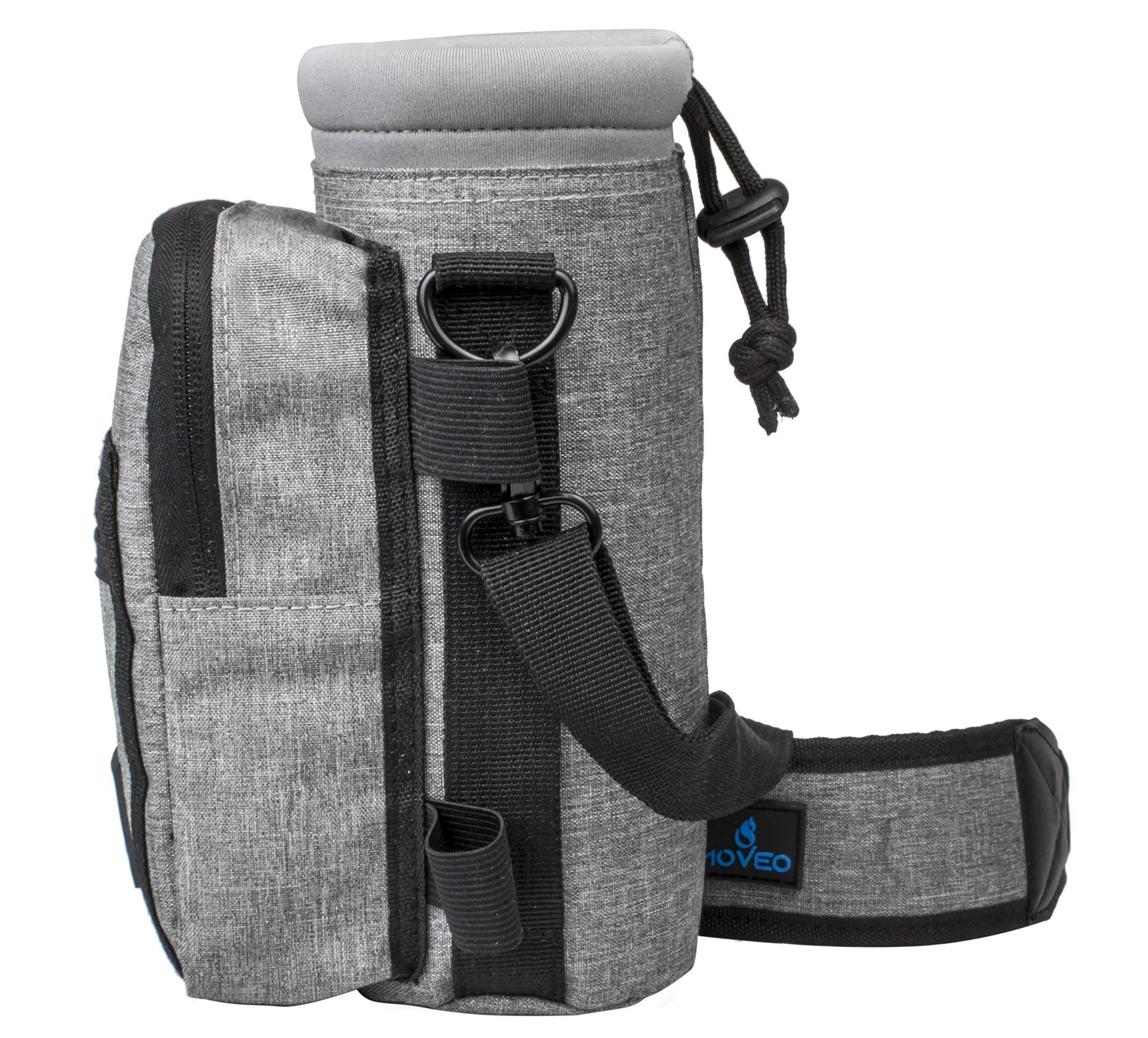 2.layered insulation for cold drinks outer layer of your insulated water bottle with strap carrier is sturdy military grade polyester that prevents minor dents and scratches. this water bottle holder with strap has a padded neoprene inner lining that insulates & cushions ensuring a no leak water bottle. the metal d-rings & clips are built to last. designed and tested in the eu and sold internationally. we offer the best quality and price because we have designed this water carrier